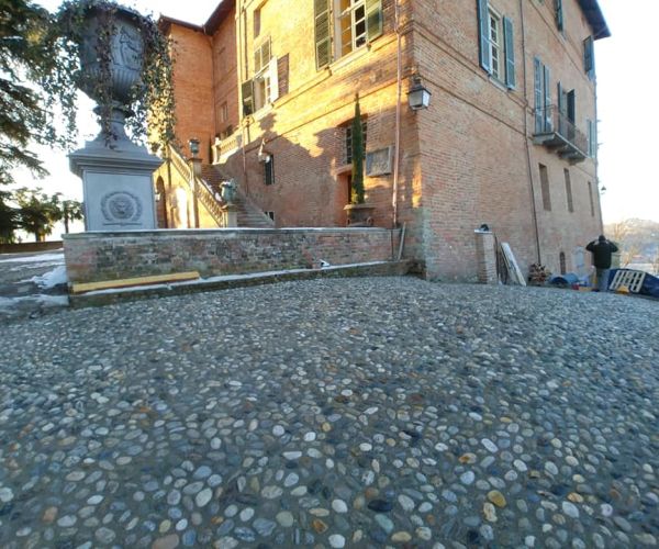 Biella - pavimentazione in ciottoli bianchi