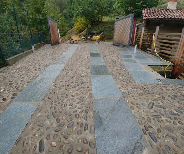 Cellio - pavimentazione in ciottoli e lastre di luserna